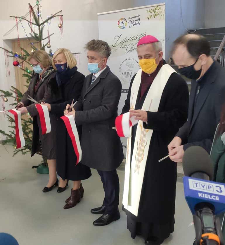 Po wrześniowym spotkaniu w Pietraszkach, przyszedł czas na wywiązanie się z obietnic! Pracowaliśmy bardzo ciężko, przechodząc czasami bardzo trudne chwile, ale udało się! Po podpisaniu umowy z Urzędem Marszałkowskim na prowadzenie Zakładu Aktywności Zawodowej, dn. 29 grudnia 2020 roku otwieraliśmy Zakład w wyremontowanej części Domu św. Jana Pawła II. W tak krótkim czasie (prace rozpoczęliśmy w październiku 2020 roku) zdołaliśmy doprowadzić do wyremontowania i zakupu niezbędnego wyposażenia. Za wielką łaskę poczytujemy sobie fakt, że jeszcze przed zakończeniem Roku św. Jana Pawła II mogliśmy zacząć, w Jego Domu, tak ważną działalność.